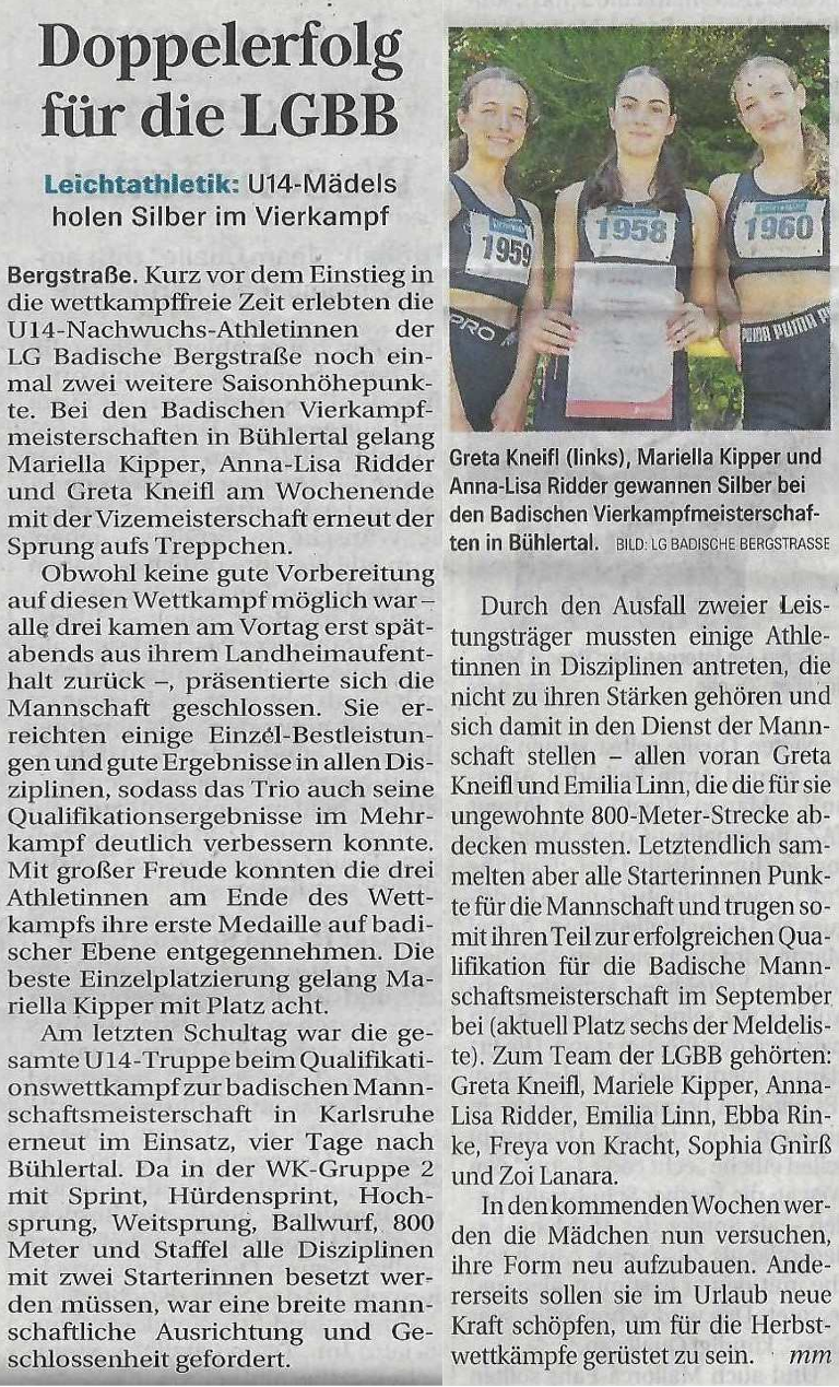 Doppelerfolg für die LGBB Zeige grösseres Bild Zeitungsartikel als PDF herunterladen Cristina Cicoare2025-12-11T21:06:46+01:00 Ähnliche Artikel Fünftbestes Team in Baden Oktober 8th, 2025 Merschhemke Kreismeister Juli 22nd, 2025 Nord gewinnt Landestitel Juli 16th, 2025