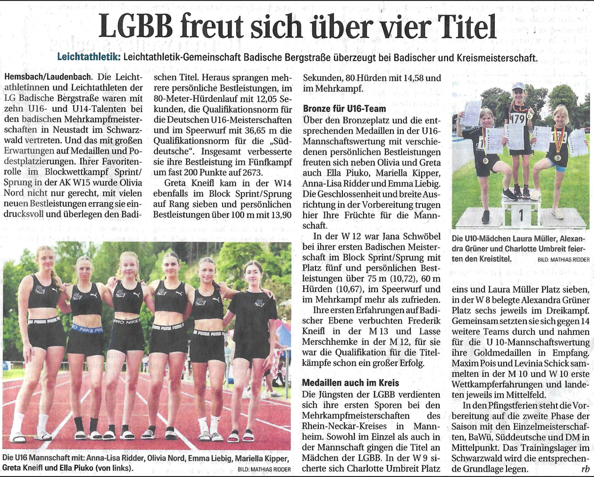 LGBB freut sich über vier Titel Zeige grösseres Bild Zeitungsartikel als PDF herunterladen Cristina Cicoare2025-12-09T20:42:56+01:00 Ähnliche Artikel Fünftbestes Team in Baden Oktober 8th, 2025 Merschhemke Kreismeister Juli 22nd, 2025 Nord gewinnt Landestitel Juli 16th, 2025